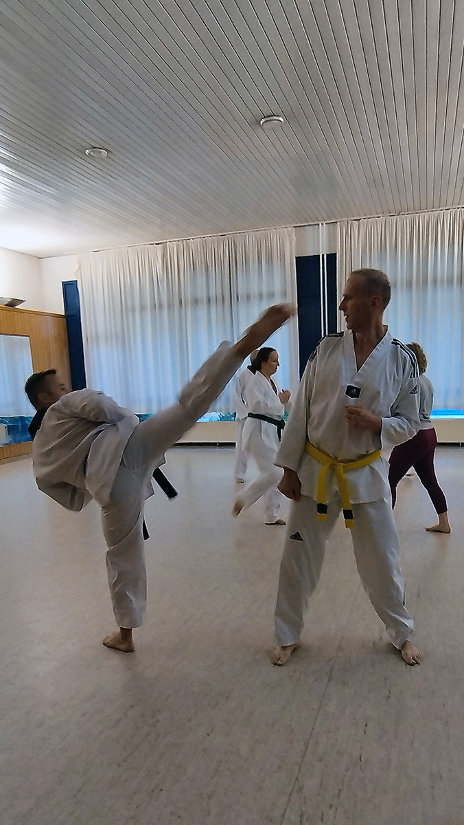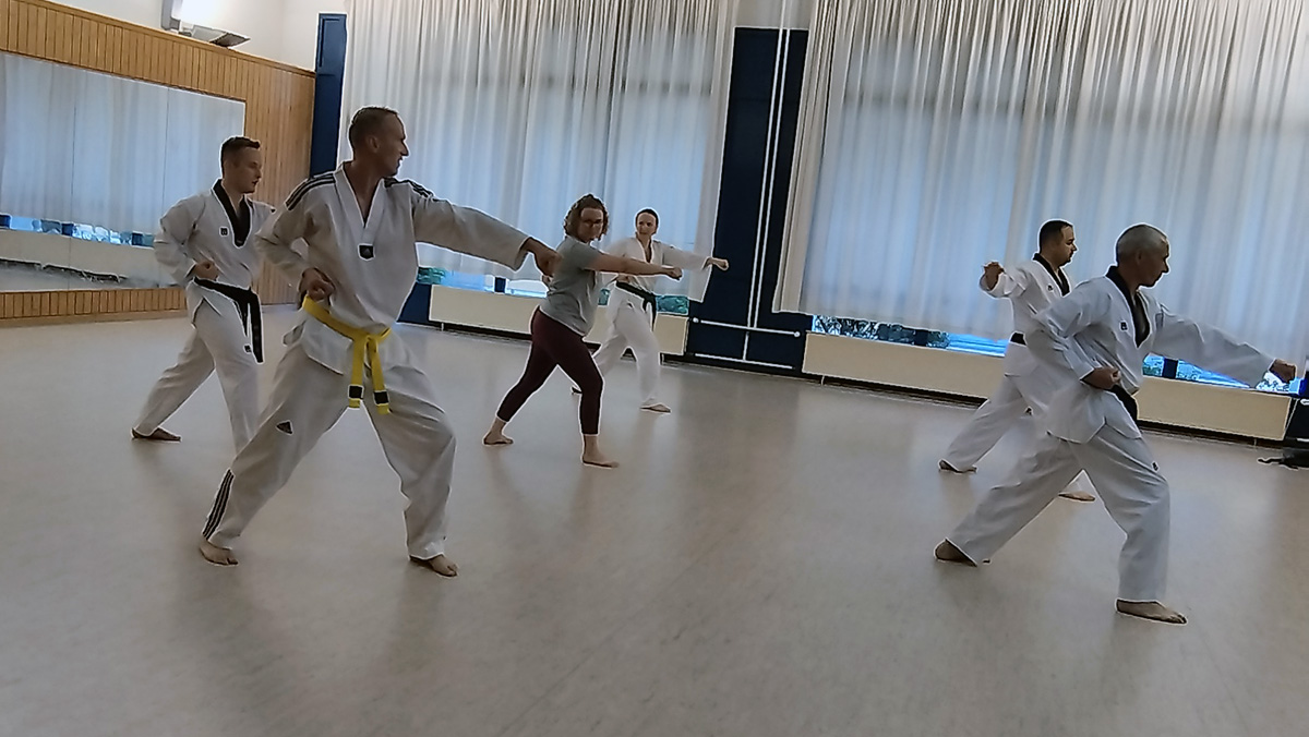 Besonders wertvoll war das individuelle Feedback, das Detlef Chabierski während der Poomsae-Einheiten gab. Kleine Korrekturen in Haltung oder Timing führten oft zu spürbaren Verbesserungen und einem ganz neuen Gefühl für die jeweilige Form.